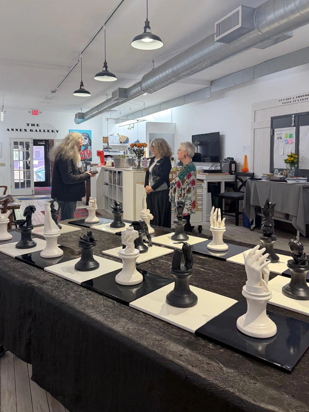 Held on the 27th as part of the Pendleton Art Center’s widely attended Final Friday, the gallery welcomed close to one hundred visitors between 5:00 and 9:00 p.m. The public showed particular interest in the political dimension underlying Ciro Quintana’s works and in the reflections on identity and gender presented through Ivonne Ferrer’s ceramic selection.