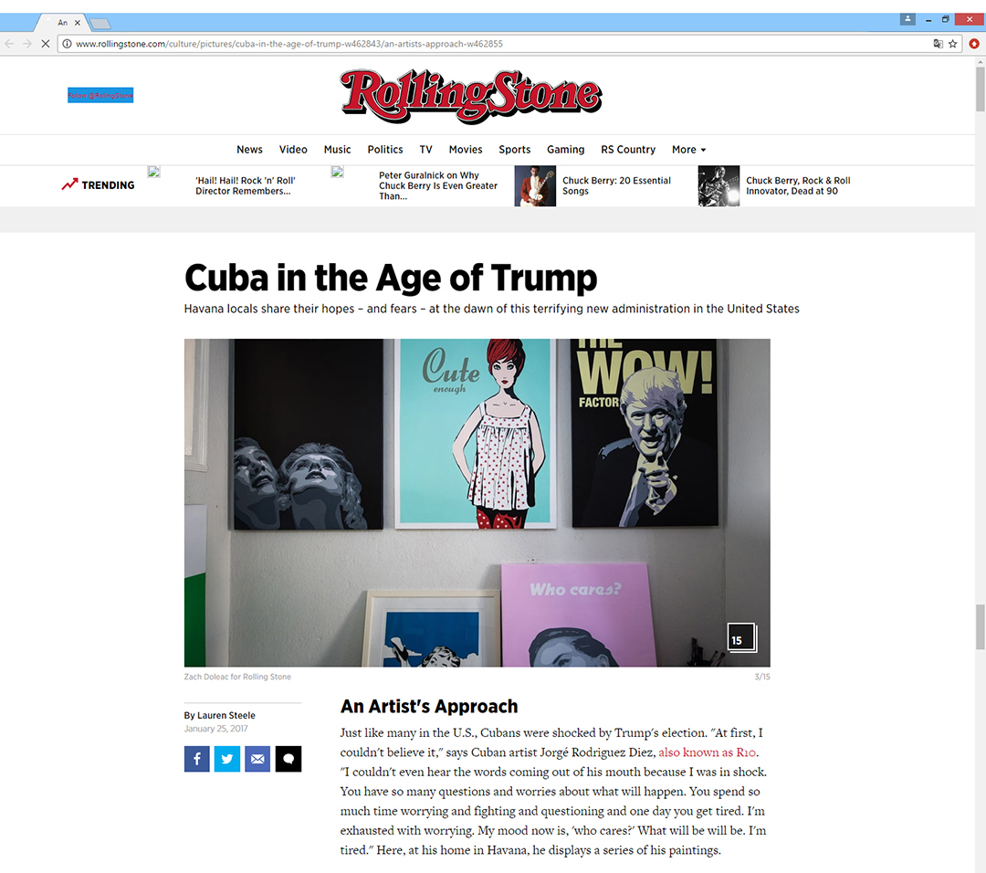 Publication in Rolling Stone magazine featuring the first piece of this series. The Wow Factor, January 2017.