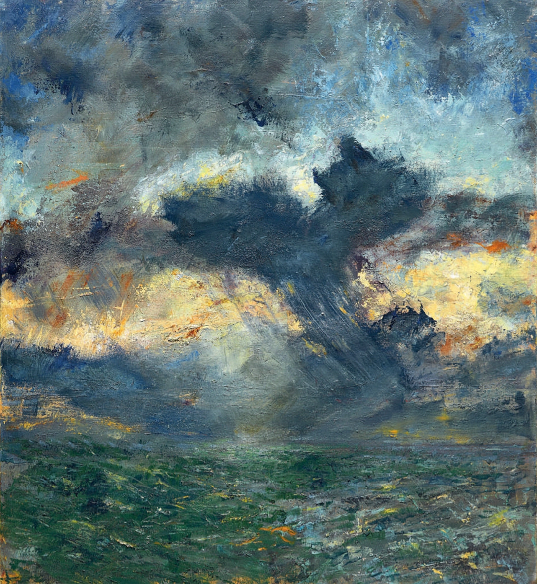 In this series, Hoare works with a richly physical paint surface—built up in thick passages and shaped with brush and palette knife—tracking passing squalls, atmospheric shifts, and the brief flare of light that precedes dusk: deep water greens, slate blues, and metallic greys, cut through by bands of yellow illumination. The exhibition includes works such as Evening Atlantic Edge (oil on linen, 99 × 90 cm). An illustrated catalogue will be available.