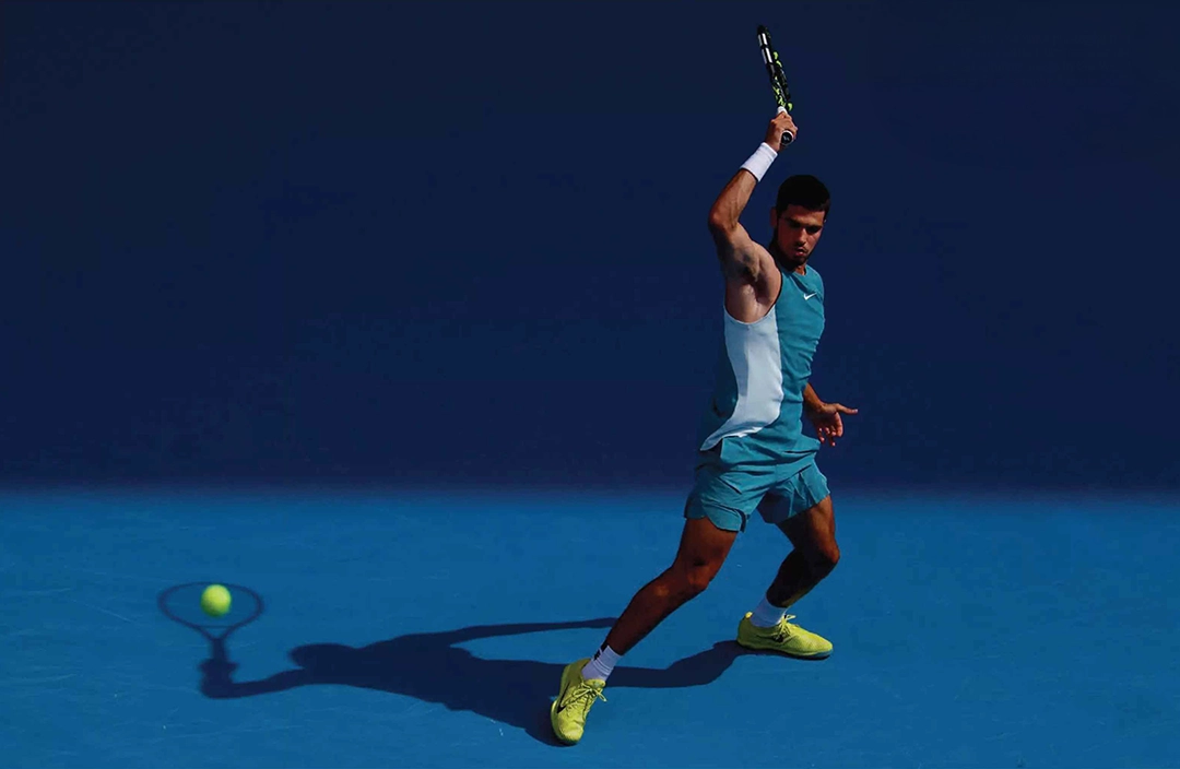 The photograph is titled Carlos’ Shadow Hits a Ball and was taken during an actual match. One could easily swear it was shot in a studio, so precise is it that it unsettles. It corresponds to the fourth match between Alcaraz and Jack Draper at the Australian Open in Melbourne.