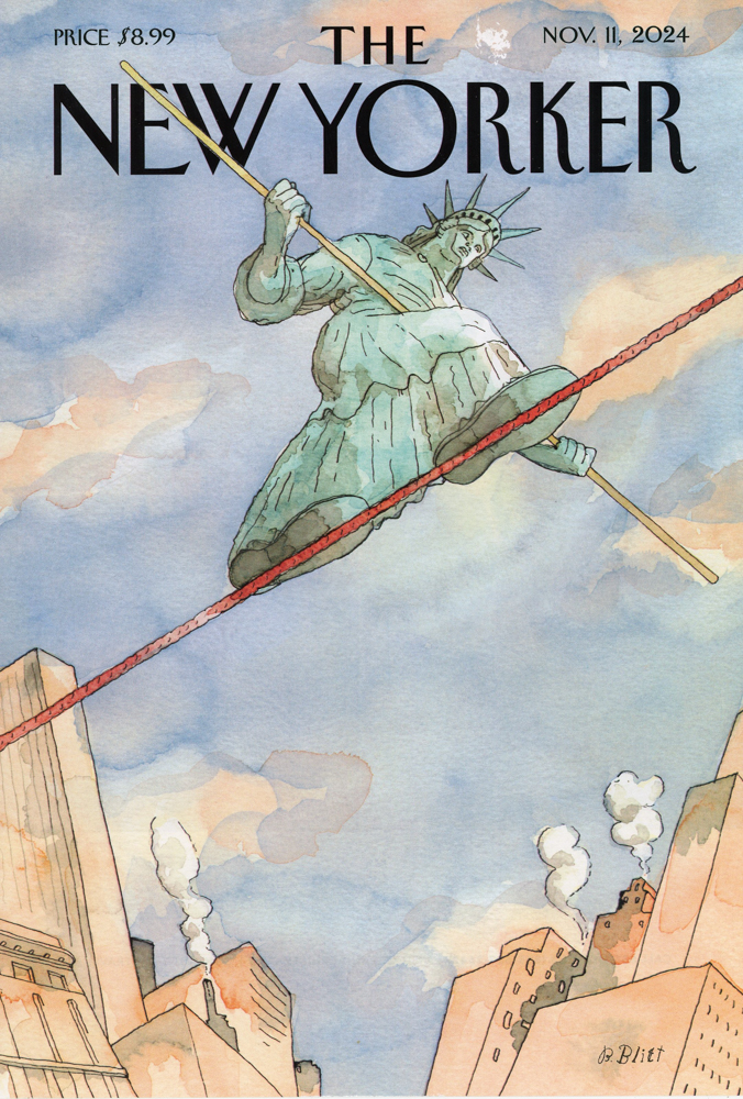 One of the covers on view, created by Canadian artist Barry Blitt. It corresponds to the November 11, 2024 issue.