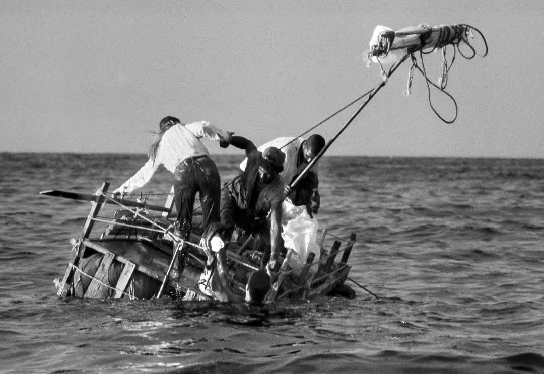 On the thirtieth anniversary of the Rafters’ Exodus, the curatorial concept designed for the 2024 FotoFocus Biennial: Backstories brings forward new pieces, installations, and documents collected in the 2014 edition. Castellanos’ creative exercise assumes the past as an open narrative—one that questions the limits of the documentary image and restructures itself as it absorbs, through time, other testimonial records provided by the rafters themselves. His work resonates with Walter Benjamin’s insight: “History is the subject of a structure whose site is not homogeneous, empty time, but time filled by the presence of the now.” The original 1994 series thus unfolds into a living chronicle, inseparable from the present experiences of those who, from diverse corners of the world, continue to follow the uncertain path of migration.